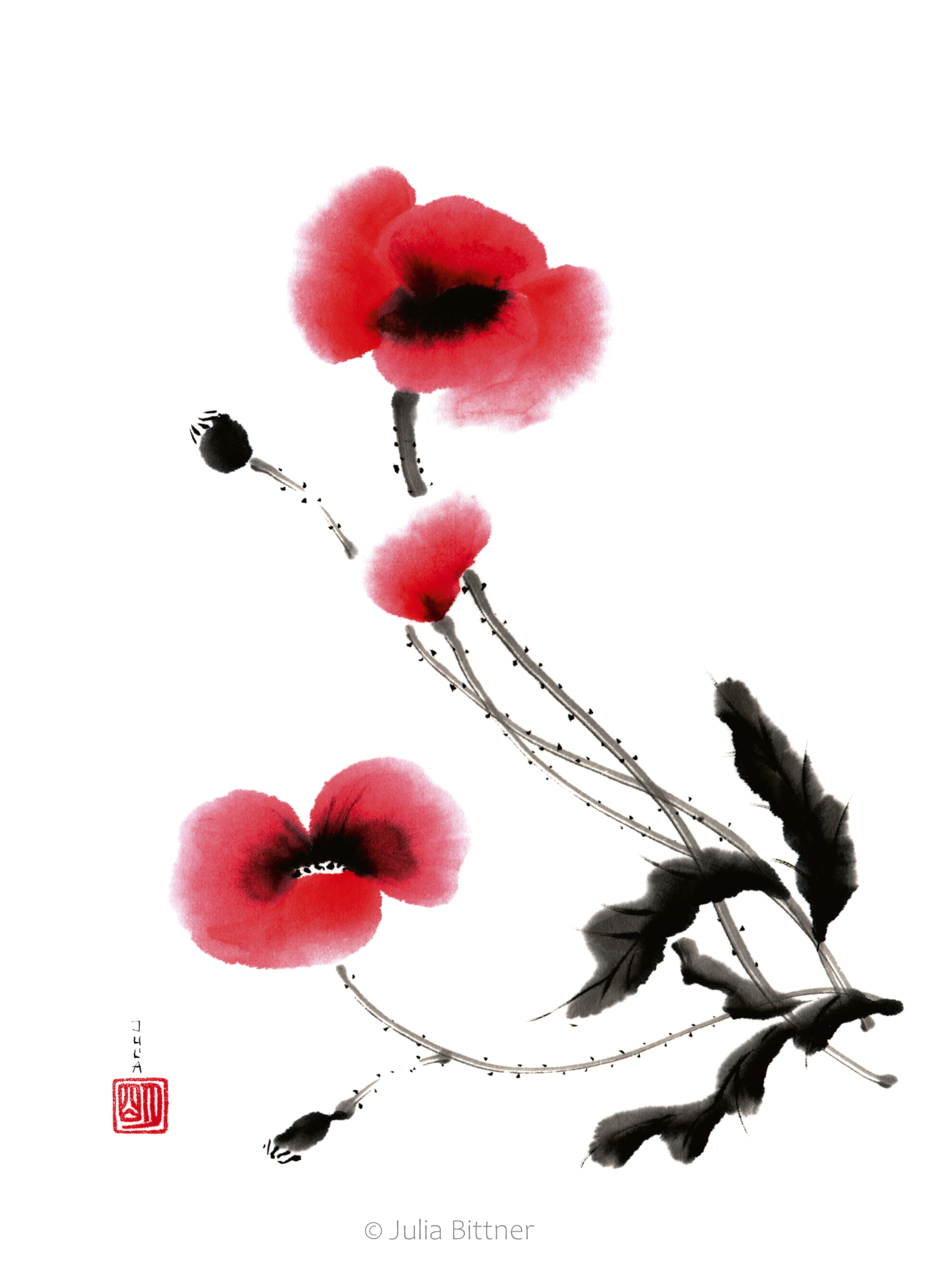 Seit 2020 beschäftige ich mich mit der Tuschemalerei und lerne aktuell bei der japanischen Kalligrafiemeisterin Akemi Lukas. Parallel zum klassisch übermittelten Handwerk experimentiere und male ich frei an eigenen Werken, um meinen individuellen Tuschestil zu entwickeln.