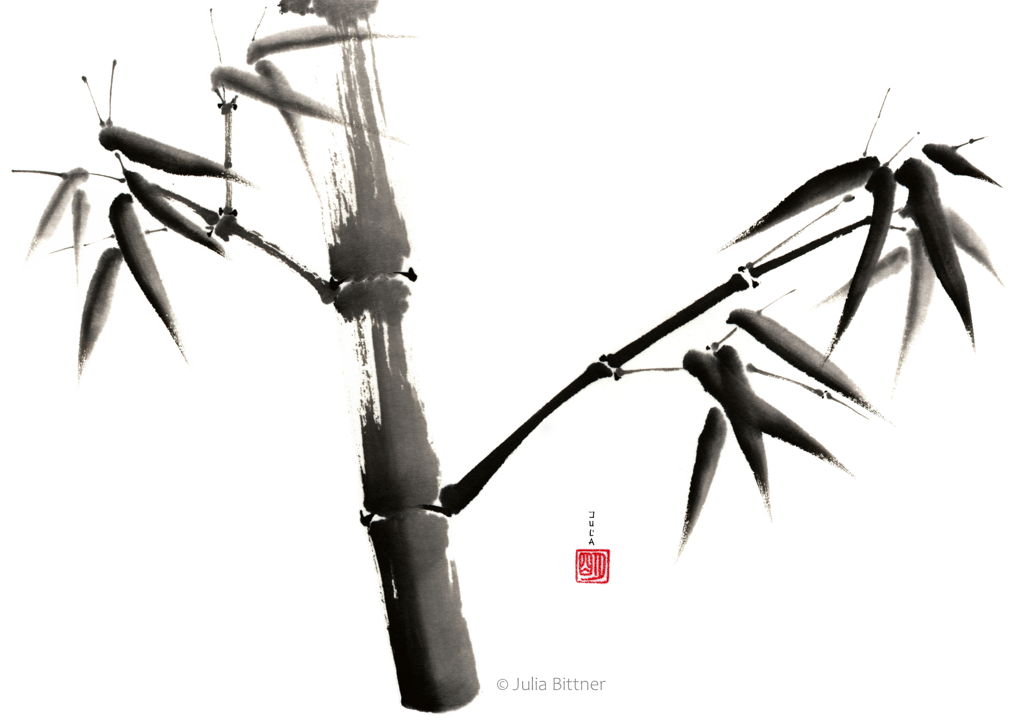 Sumi-E ist japanische Tuschemalerei, welche im 12.Jh. von chinesischen Zen-Buddhisten nach Japan gebracht wurde. An den dortigen Klöstern wurde die Tuschemalerei zu einem eigenständigen japanischen Stil weiterentwickelt. Sumi-E bedeutet übersetzt „Schwarze-Tusche-Bild“ und zeichnet sich durch eine klare, reduzierte Bildsprache aus, die nur das Wesentliche eines Bildgegenstandes ausdrückt. Da jeder Pinselstrich endgültig und nicht korrigierbar gesetzt wird, sind die richtige Technik und ein ruhiger Geist wichtig. Es ist ein sehr meditativer Prozess.